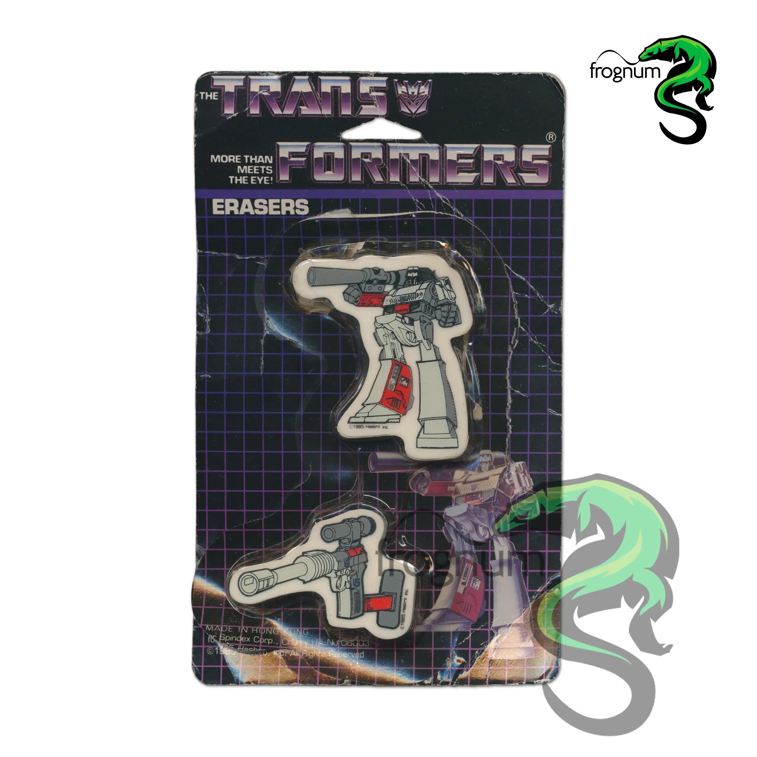 Los punteros eran fabricados en goma PVC, y nos presentaban una figura no transformable con un agujero en su parte inferior para colocarlos al extremo de un lápiz. Sin embargo, en el empaque original, son presentados como gomas de borrar.